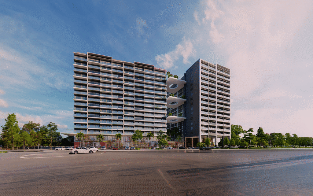 - ⛵ Nautical Elegance: The building’s wave-inspired façade, soft curves, and light coastal palette evoke the calm and sophistication of an upscale seaside resort.